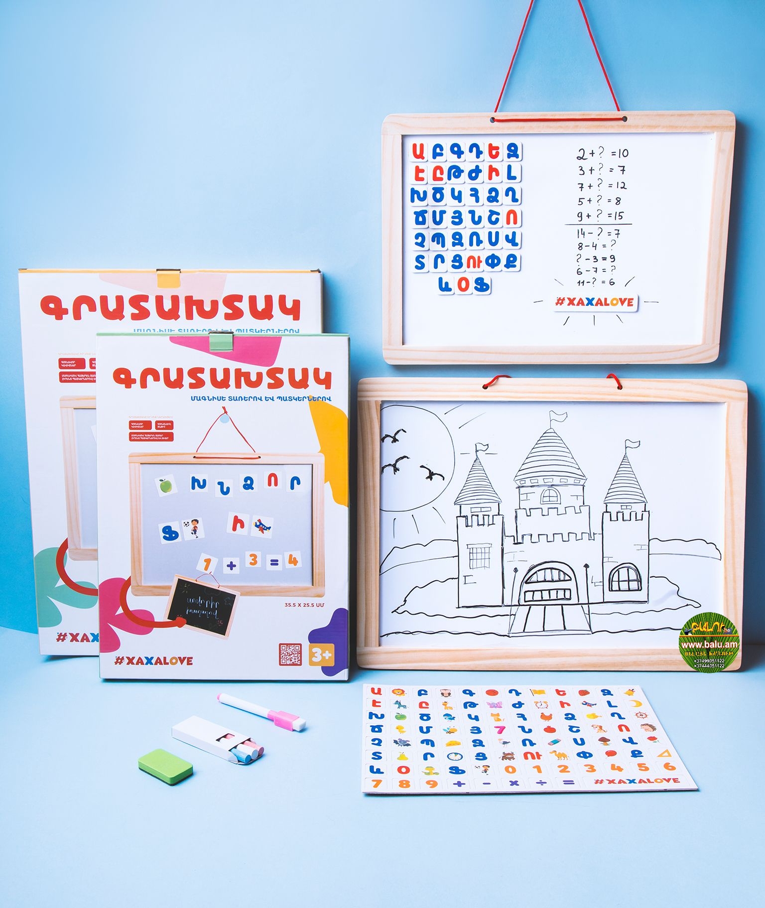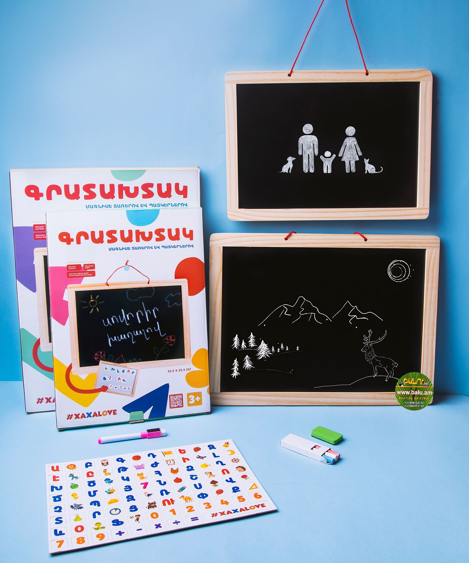 Գրատախտակ փայտե, մագնիսե տառերով և պատկերներով, (երկկողմանի)