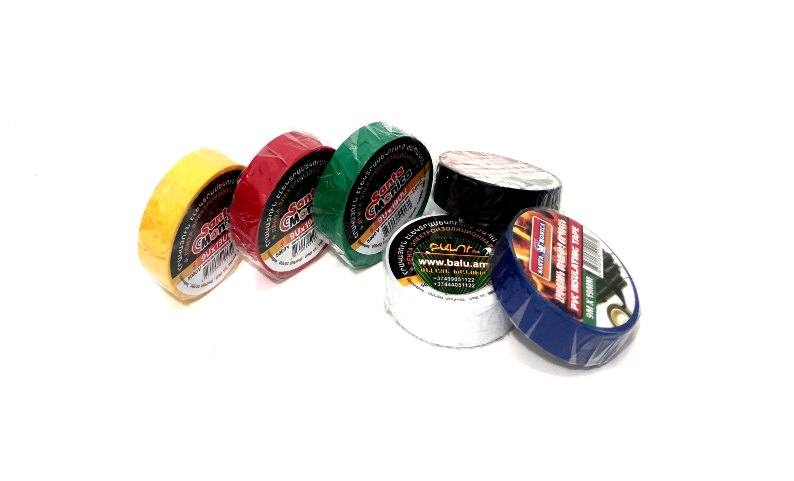 Կպչուն հրակայուն մեկուսիչ ժապավեն կապույտ, սև, սպիտակ, դեղին, կարմիր, կանաչ, 19մմ 9մ