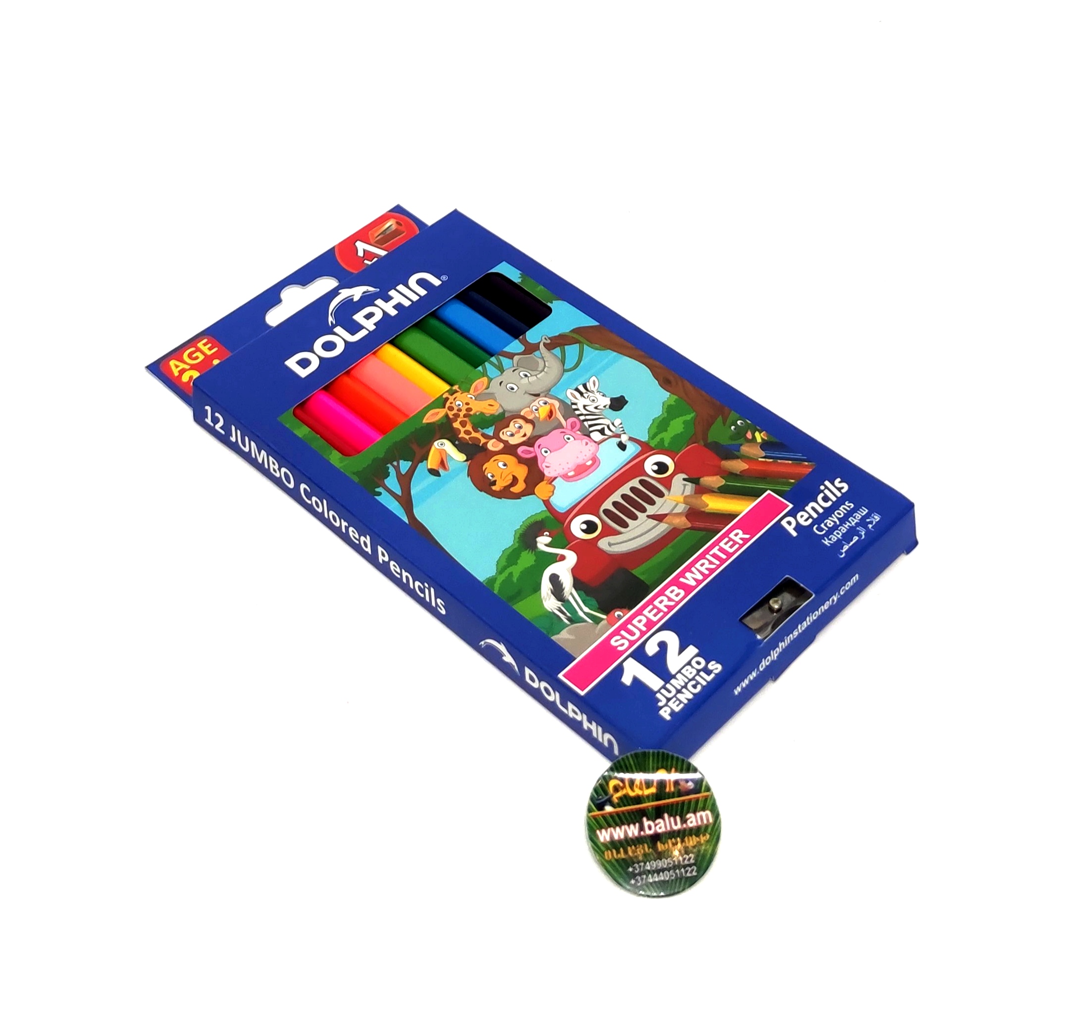 ԳլխավորԳրենական պիտույքներՆկարչական պարագաներ Մատիտ հաստ 12 գույն Dolphin +1 սրիչ