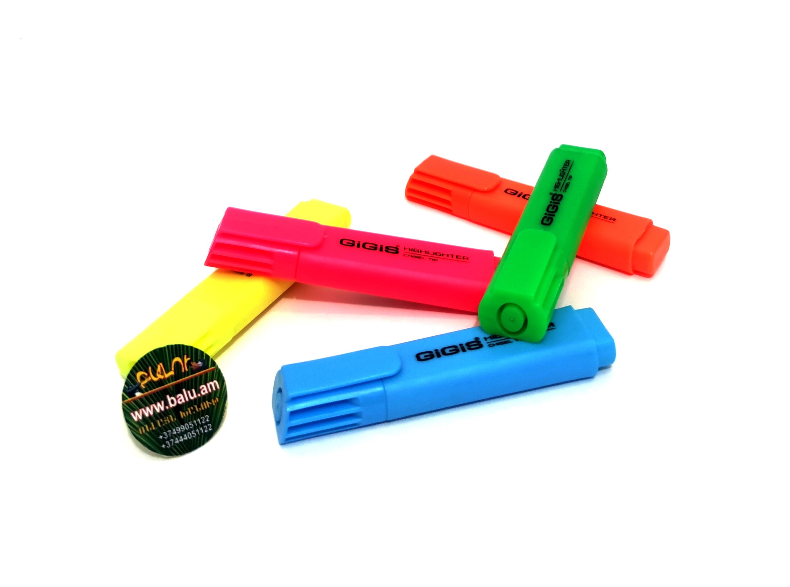 Մարկեր ընդգծող կապույտ, կանաչ, դեղին, նարնջագույն, վարդագույն, Gigis