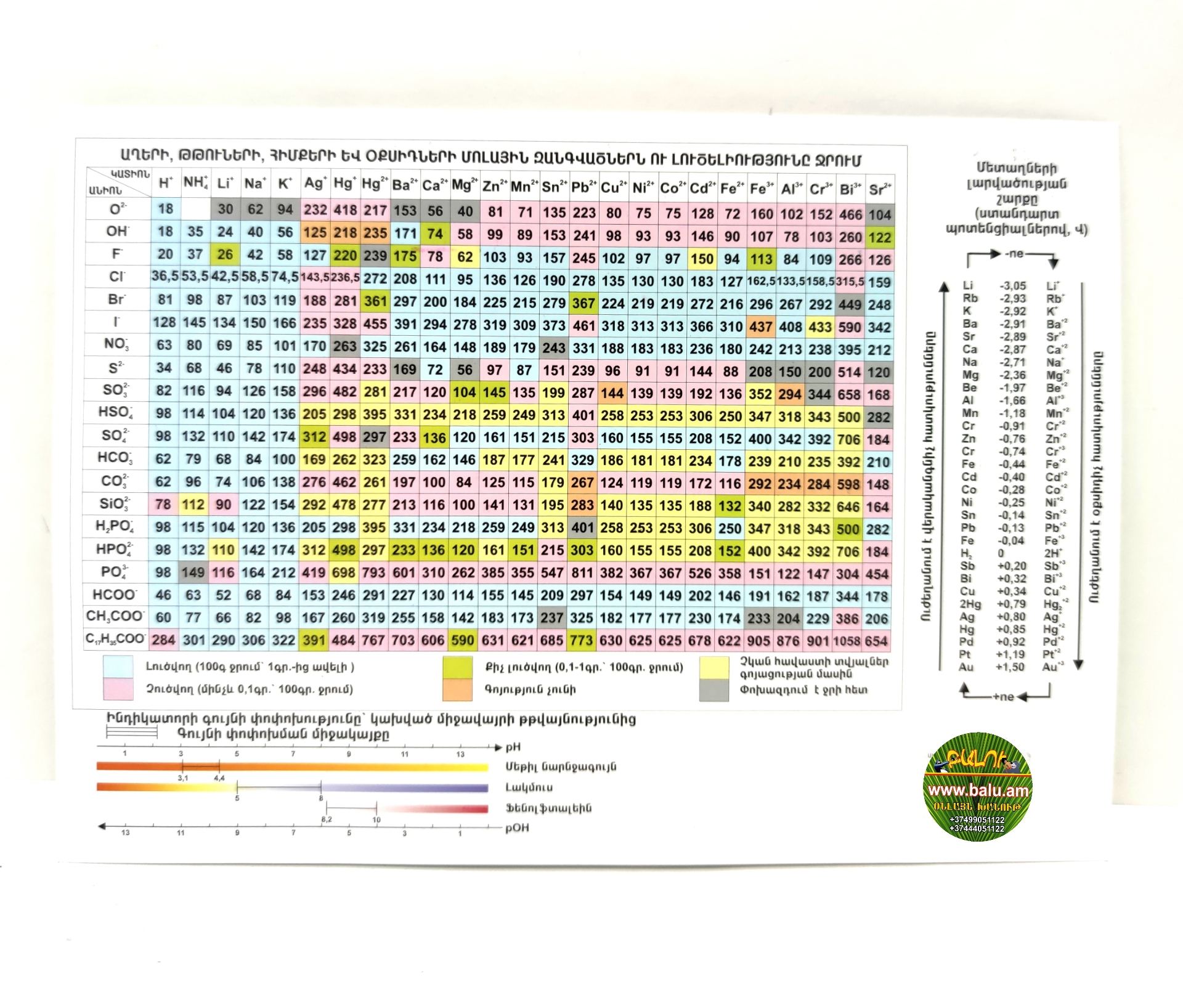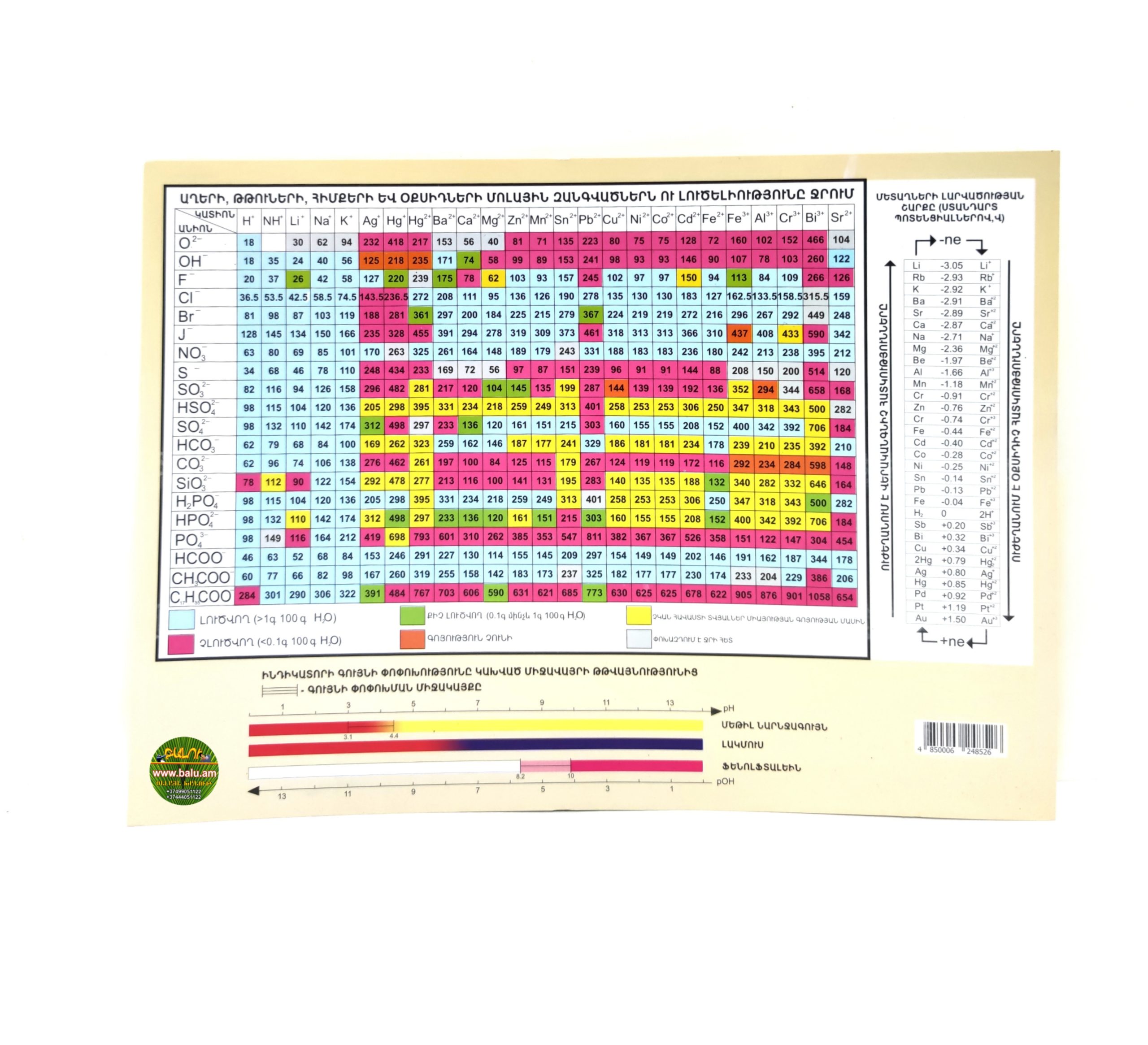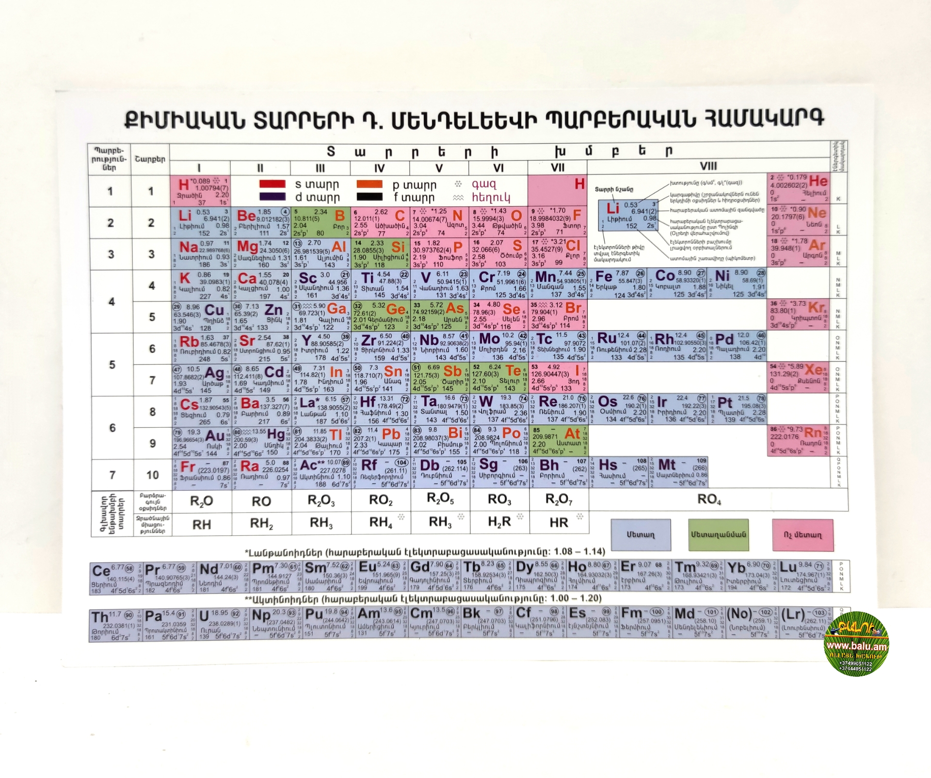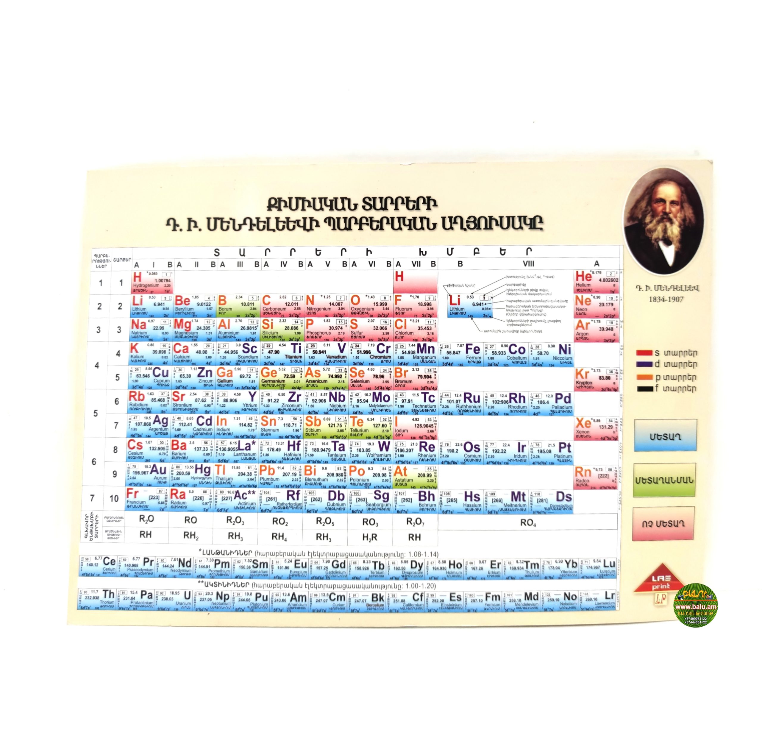 ԳլխավորԳրենական պիտույքներՈւսուցողական պարագաներ Մենդելեևի պարբերական աղյուսակը